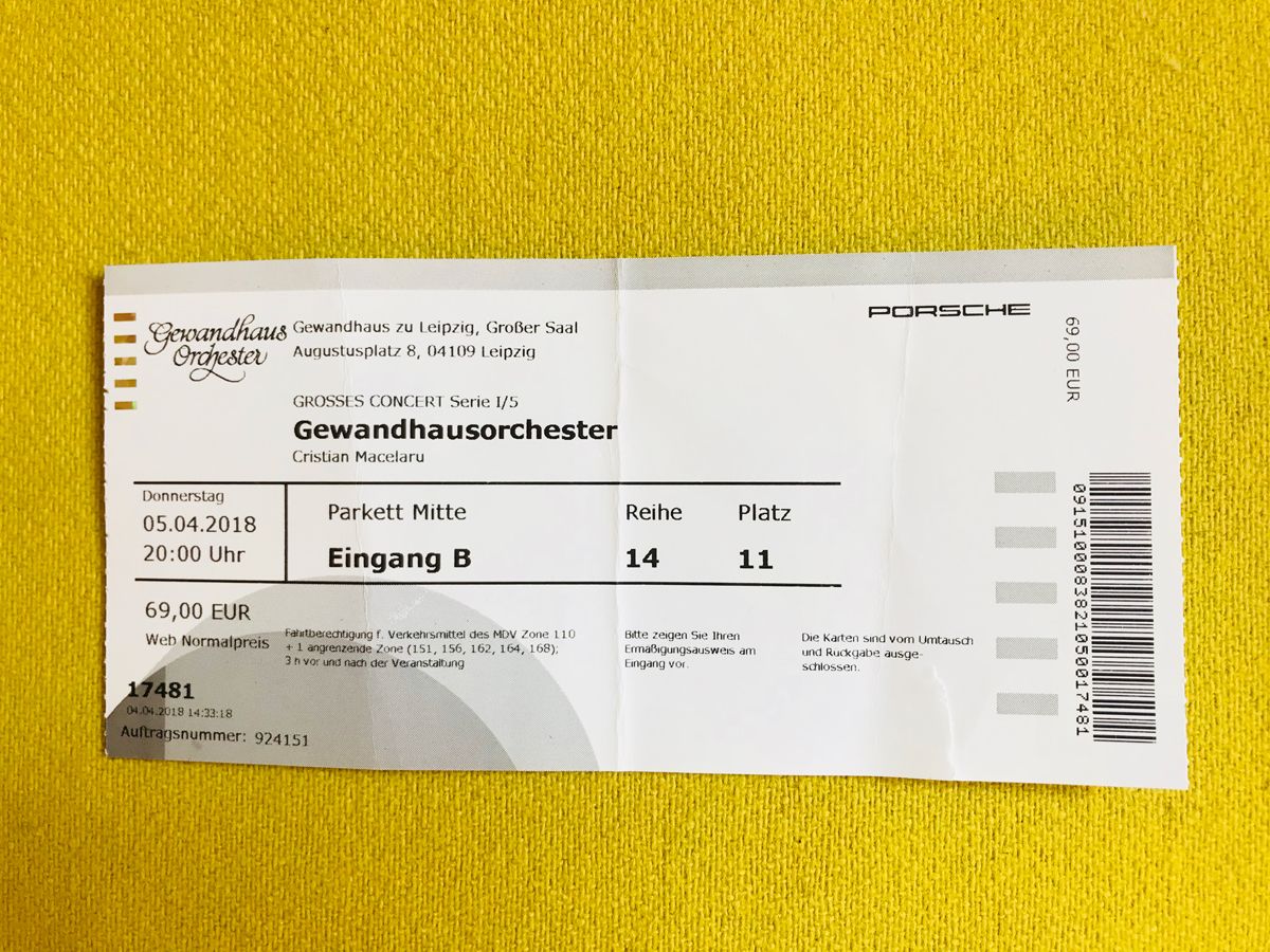 Kürzlich schritt ich in Leipzig über den ehrwürdigen Augustusplatz, ein Ort der Zivilcourage und des Widerstands, der die Schreitende aufrichtet im Andenken an die legendäre Montagsdemonstration gegen das SED-Regime, die auf die ganze ehemalige DDR ausstrahlte. Ich schritt zum Konzert im Gewandhaus, Grosser Saal, 1900 Sitzplätze.