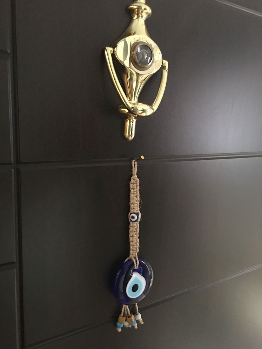 Doch ganz immun gegen all die Geistergeschichten bin ich inzwischen auch nicht mehr: Als wir kürzlich umzogen (auch wegen der neurotischen Vermieterin), da habe ich mich ertappt, wie ich als erstes das Blaue Auge an unsere neue Wohnungstüre nagelte. Übrigens: nun stehen schon zwei Appartments leer in unserem ehemaligen Haus. Und das, obwohl unsere Schuhe vor der Wohnungstüre weg sind.