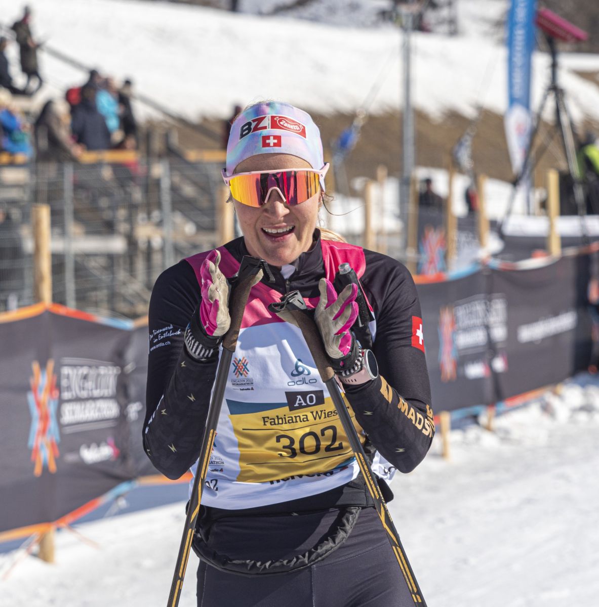 Viele Teilnehmerinnen und Teilnehmer verbringen einige Tage im Engadin, damit sie die gesamte Marathonstimmung aufsaugen können. Sie wurden mit dem Engadin Skimarathon-Virus infizieret und beschreiben das Rennen als Mythos. Für jemand, der das noch nie erlebt hat, ist die Stimmung nur schwer zu beschreiben. Von ehemaligen Teamkolleginnen und -kollegen weiss ich, dass der Nervositätspegel beim Engadin Skimarathon teilweise höher ist als bei Weltcuprennen. Grund dafür möge «Conquest of Paradise» sein, das altbekannte Lied ertönt jeweils kurz vor dem Startschuss. Wer den Engadin Skimarathon bereits gelaufen ist, der bekommt bei diesem Lied garantiert Gänsehaut. 14000 Langlaufbegeisterte machen sich bereit und richten ihren Fokus auf diesen einen Moment, in dem sich alles in Bewegung setzt. Der Fokus, die Ruhe und das kurz darauf eintreffende, hektische Chaos – Das ist der Engadiner. Stockbrüche, Stürze, Hungeräste, Krämpfe und dennoch empfindet der grosse Teil beim Zieleinlauf nur eines: Pure Glücksgefühle.