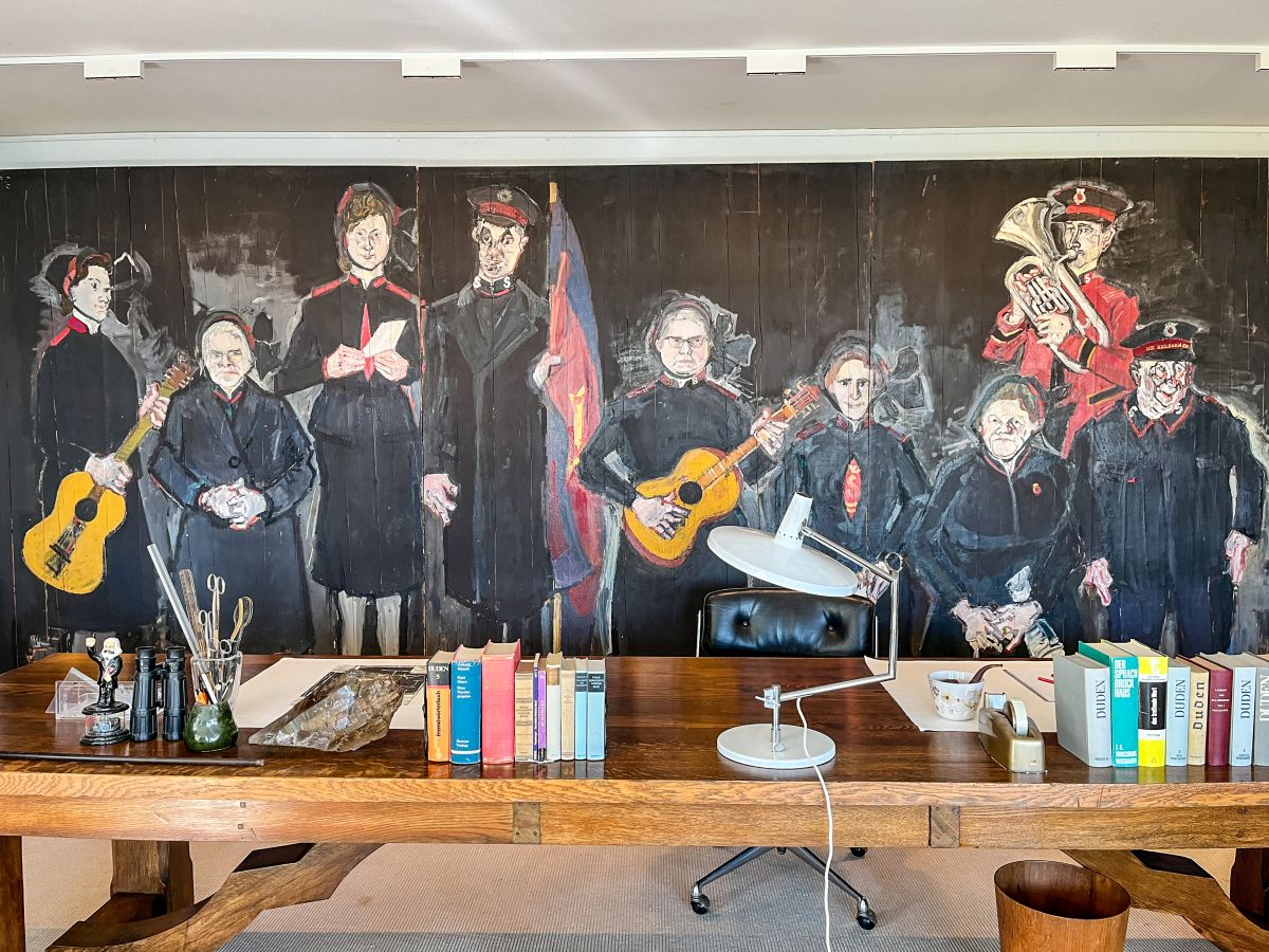 Ostern ist grad vorbei, als der Schreibende anstatt im Garten dem Löwenzahn beim Wachsen zuzuschauen, mit seiner Partnerin eine kleine Reise tut. Einmal mehr landen wir in Neuchâtel, steigen ins Vallon de l’Ermitage hoch und besuchen dort zum ersten Mal überhaupt das Centre Dürrenmatt, welches gerade sein 25-Jahr-Jubiläum feiert. Der Schreibende wundert sich im CDN, wie das Centre Dürrenmatt Neuchâtel abgekürzt heisst, über das malerische Erbe Dürrenmatts und staunt zugegebener weise auch ob dessen literarischem Werk, welches sich hier Besuchenden in seiner ganzen, schier unglaublichen Breite und Tiefe darlegt. Endlich kauft er sich Dürrenmatts «Durcheinandertal» – diese satirische Gangstergroteske, welche in seinen Grundzügen Dürrenmatt schon 1957 bei einem Aufenthalt in Vulpera eingefallen sein soll – nimmt es am Abend im Hotel zur Hand, verschlingt die 140 Seiten förmlich und amüsiert sich dabei, Seite für Seite, köstlich.