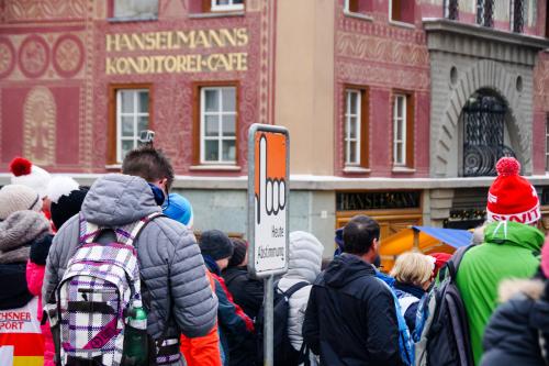 Che sfida! Da la fin d'eivna passeda vaivan tuots ün pôin chila a San Murezzan. Eir, scha que nu vulaiva natürelmaing üngün admetter aviertamaing. A la fin finela as porta cò sül tschop il label «Top of the World» ed il sulagl i'l cour e que cun superbgia. Ma divers, grands evenimaints sportivs ed importantas decisiuns politicas haun tgnieu sü ot il puls e chaschuno cò e lo ün sön liger. Forsa cha eir la glüna plaina da gövgia passeda ho auncha güdo tiers e tgnieu sdasdo a quels, chi zieva ün'eivna da champiunedis, zieva lungs dis e cuortas nots, füssan stos cots da sön. Ma, ad es uossa eir a San Murezzan mited favrer e dimena stagiun ota – Highlife cun tuot que chi tuocha tiers. Grazcha als champiunedis mundiels da skis es preschainta üna massa da glieud. Insomma dapü cu’l solit. Sül champ sportiv haun gieu lö las duos cuorsas rojelas dals champiunedis mundiels da skis, il derby da hockey engiadinais ed eir la prüma dumengia da las cuorsas da chavals White Turf sül lej inglatscho. Tuot i'l radius da pochs tschient meters e, tuot infra pochas uras. Duos dis stedi d'urgenza! 222 spectatuors haun vis in sanda saira, scu cha l'osp, il EHC San Murezzan ho decis illa prolungiaziun il derby cunter il Club da hockey Engiadina. Arduond 9000 persunas as haun radunedas intuorn l'oval da cuorsa sül lej ed incurascho ils quadrupeds cun lur jockeys süllas arains. E dafatta fin 40'000 persunas haun visito las duos cuorsas aval chi haun gieu lö her dumengia üna zieva l'otra. In sanda, chera glieud, es nempe capito que, cha’s pudess circumscriver cul pled inter rumauntsch «Worst Case». Sgür our da vista dals organisatuors e forsa eir our da vista da quels tschients u millis da spassagiunz chi d'eiran bloccos sülla senda da Uorsin, be pochs tschient meters suot l'entreda e suot las tribünas a Salastrains. Sgüra ch'els haun vis sü, spettand in culuonna, quella maledetta nüvla gigantesca sü sur la pista. Per üna vouta na la misteriusa «serp da Malögia», ma la parainta, spessa vetta anonima da tschiera, chi s'ho missa imprudaintamaing sur la pista da skis ed impedieu uschè la partenza da quella. Invezza da scriver cò da «Worst Case» as pudess guarder però tuot que eir in sen positiv e scriver las seguaintas lingias grassas: «Record mundiel! 40'000 as radunan a Salastrains per fer cumünaivelmaing marenda.» Ün evenimaint cha'ls turistikers stuvessan svilupper inavaunt, par exaimpel il sen d'üna «Tavolata d'inviern» opür d'üna «Stramangeda» extaisa. Hoz lündeschdi es planiseda la cumbinaziun alpina dals homens. Illa zona da peduns suna a las 17.00 ed a las 19.00 la band Tawnee, cun rischs grischunas e cuntschainta, pustüt, per lur hit «Jamie» dal 2013.