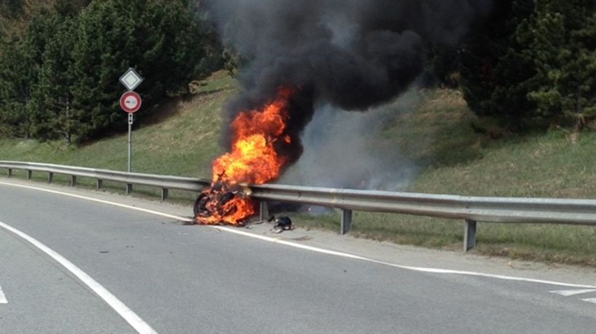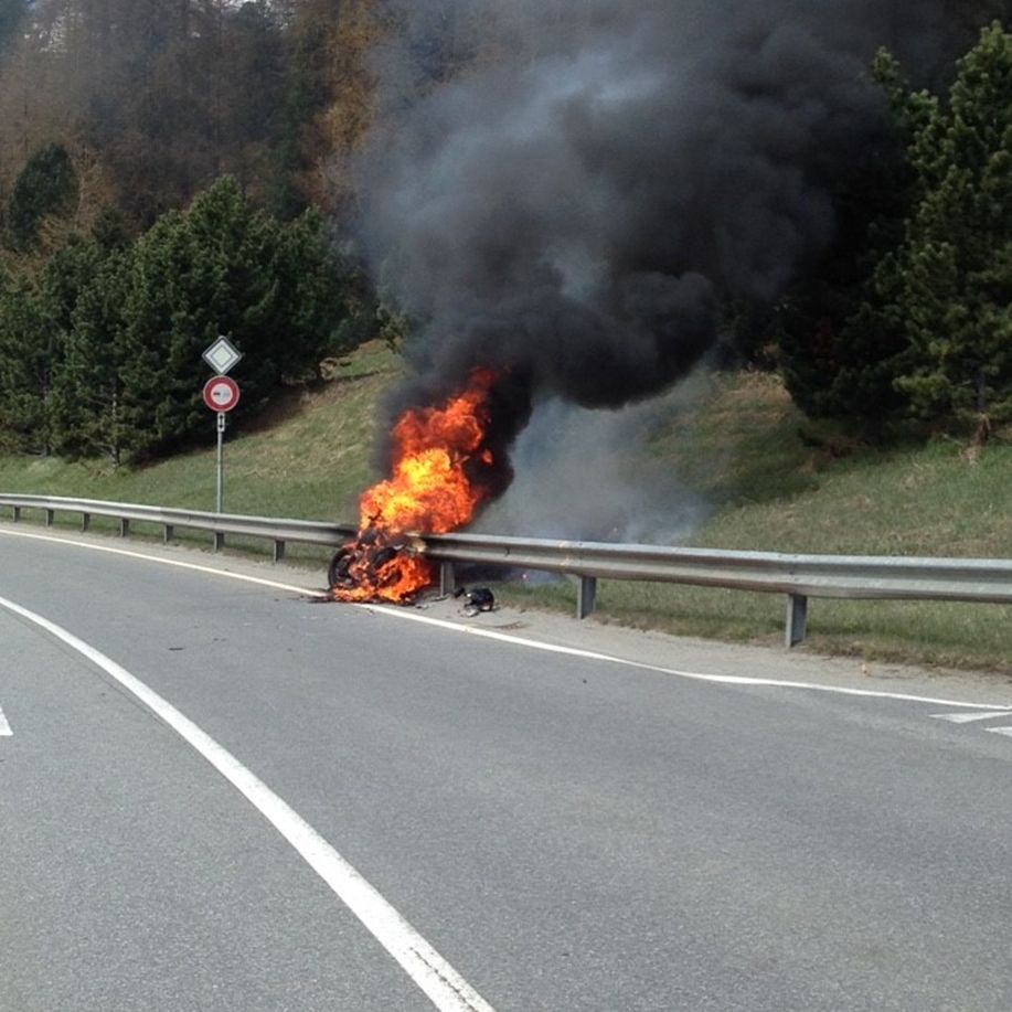 Am Sonntagvormittag ist ein Motorrad auf der Hauptstrasse in Champfèr vollständig ausgebrannt. Verletzt wurde laut einer Mitteilung der Kantonspolizei niemand. Die Feuerwehr Trais Lejs rückte mit sieben Mann an den Brand aus und hatte diesen schnell unter Kontrolle.