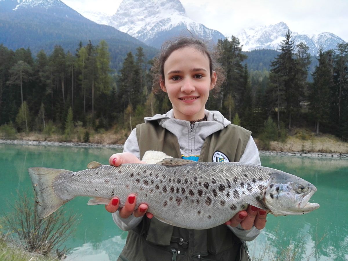 Die 13-jährige Ladina Mittner hat mit ihrem ersten Fischerpatent im Inn im Unterengadin grosses Fischerglück gehabt. Sie fing am zweiten Fischertag ihrer Jungfischerkarriere eine prächtige Forelle von 1,5 kg und einem halben Meter Länge. Am selben Tag gelang ihr auch noch, das Maximum von 6 Forellen zu fangen.
