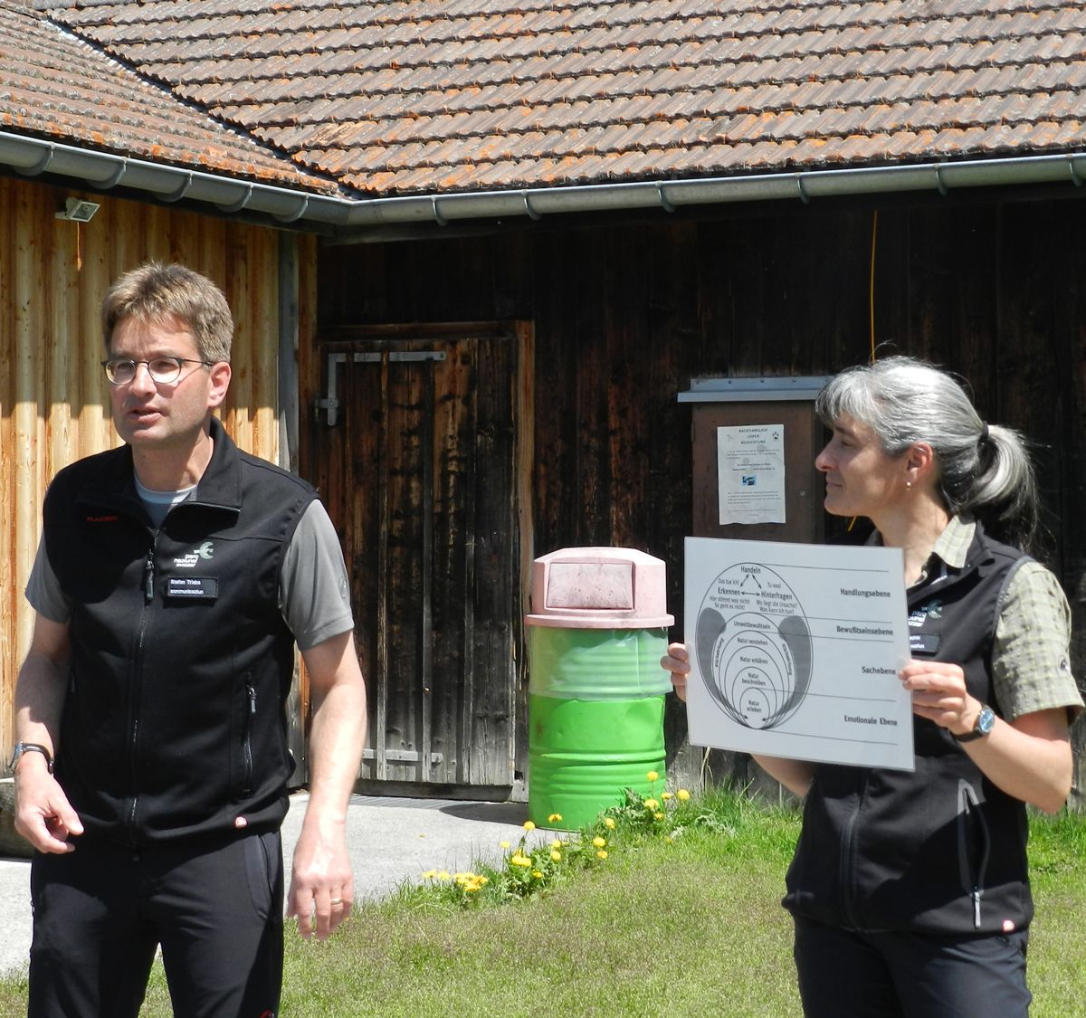 Ils duos collavuraints dal Parc Naziunal Svizzer, Stefan Trieb ed Anna Mathis, organiseschan ils Dis d’aventüra PNS daspö quindesch ons (fotografia: Annatina Filli).