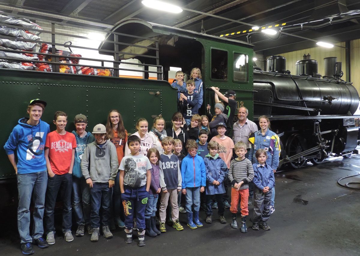 Die CEVI Jungschar Samedan/Oberengadin besucht immer wieder spannende Berufsgruppen oder Einrichtungen im Tal. Kürzlich konnten Kinder und Jugendliche das RhB-Depot besuchen.