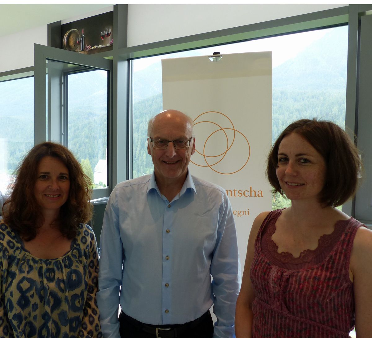 I’l nouv büro da la Lia Rumantscha a Scuol lavuran Martina Schuler (da schnestra), Mario Pult e Flurina Plouda (fotografia: Flurin Andry).