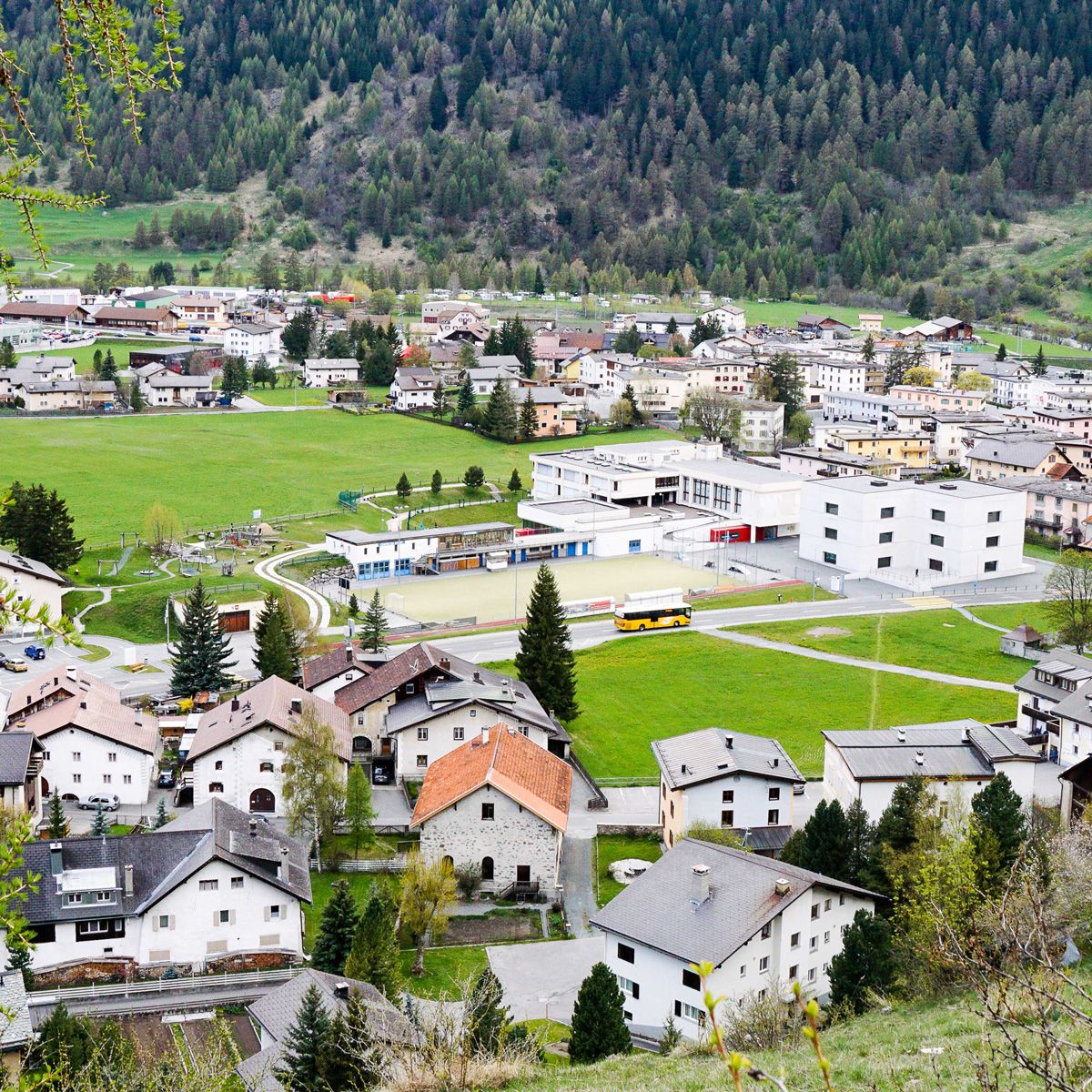 Sicht auf das Schulhausareal in Zernez. Foto: Jon Duschletta