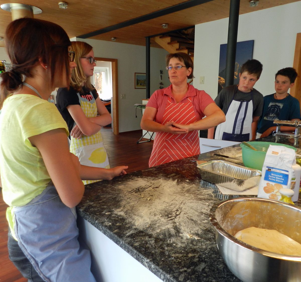 Ils uffants han imprais pro Regula Felix a far svessa pasta, gnocchis e sosa da tomatas. Eir ils mats d’eiran inchantats da far svessa la pasta (fotografia Annatina Filli).