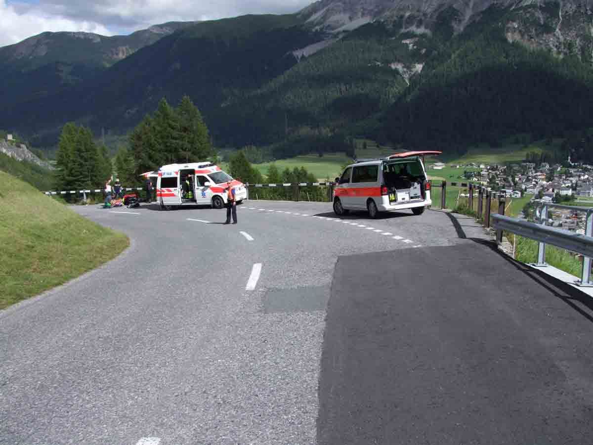 Auf der Albulastrasse ist am Montagnachmittag ein Rennradfahrer gestürzt. Der 18-Jährige und sein Vater fuhren gegen 16 Uhr talwärts in Richtung La Punt-Chamues-ch. Dabei kollidierte der vorausfahrende Mann in einer Linkskurve mit dem rechtsseitigen Bündnerzaun, stürzte auf die Fahrbahn und zog sich diverse Frakturen zu.