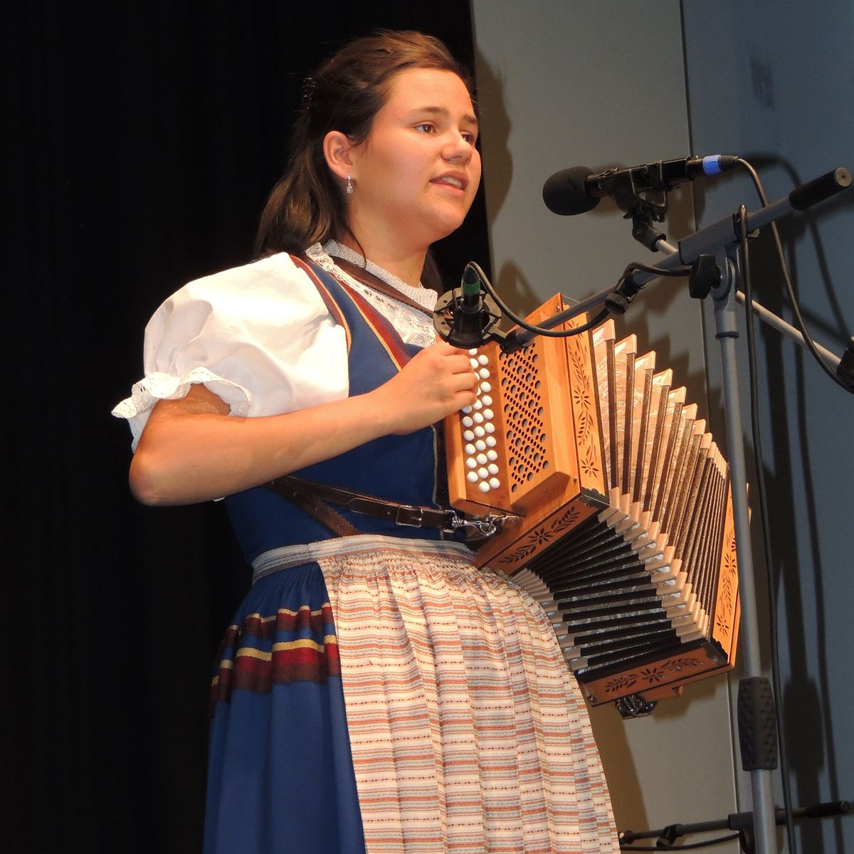 Eir la jodladra Madlene Husistein (a schnestra) s’ha preschantada a Strada (fotografia: Benedict Stecher).