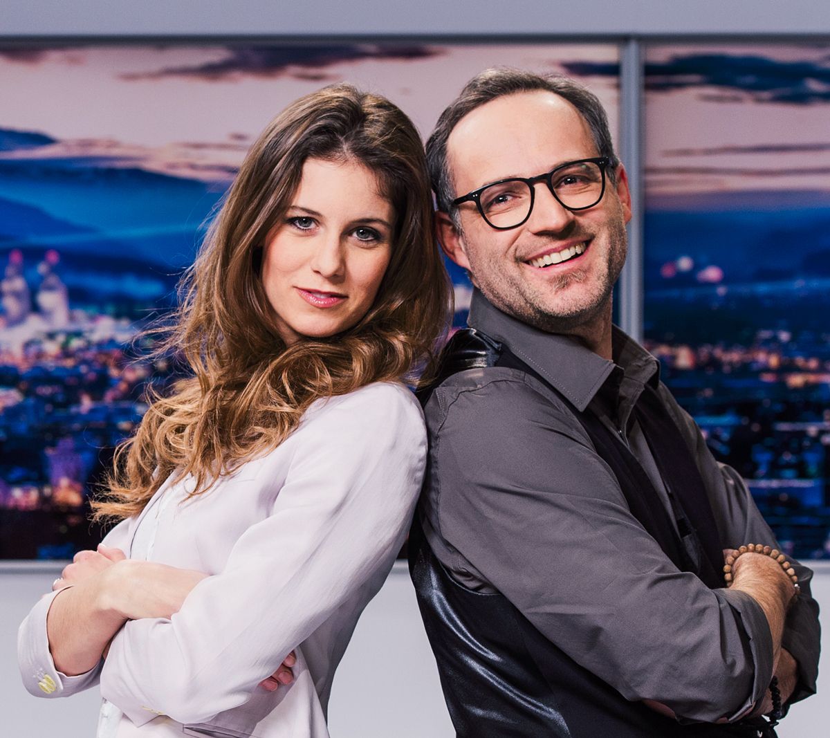 L’Engiadinaisa Annina Campell ed il Jauer Livio Foffa modereschan daspö prümavaira l’emischiun da Telesguard (fotografia: RTR).