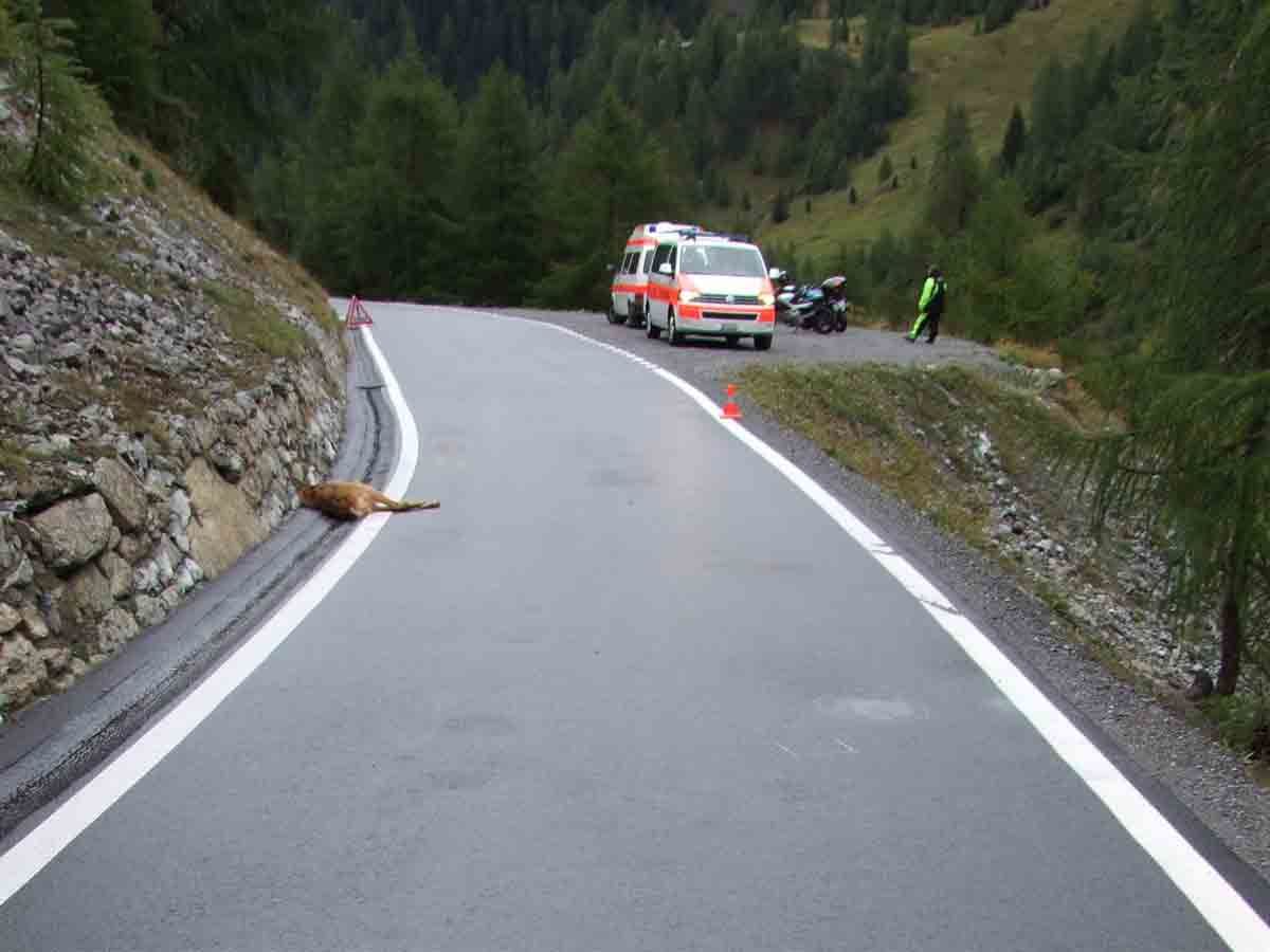 Am Montagvormittag ist es am Umbrailpass zu einer Kollision zwischen einem Motorrad und einem Reh gekommen. Bei der Örtlichkeit Blaisch da Punt rannte dem 57-jährige Motorradfahrer ein Reh vor das Motorrad. Er stürzte und verletzte sich. Das Reh wurde bei der Kollision getötet.