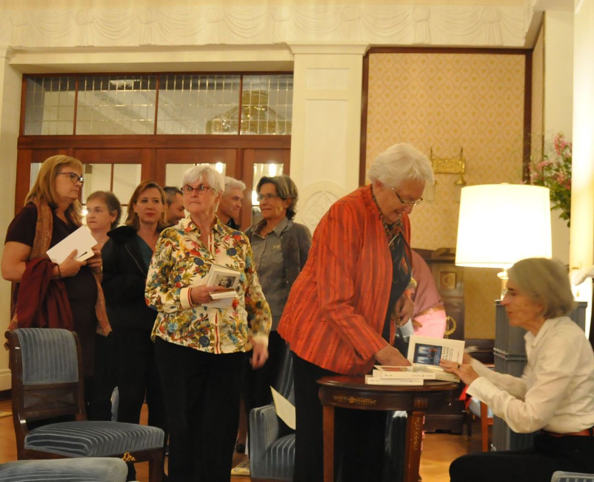 Ansturm auf den Büchertisch. Donna Leon signiert und diskutiert mit ihren Fans.
