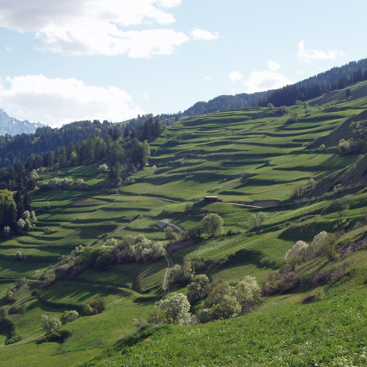 Terrassas sco qua quellas da Tschlin dan structura a la cuntrada cultivada (fotografia: Flurin Andry).