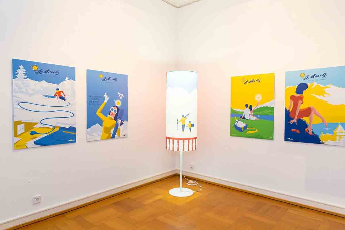 Das Design der auf die Ski-WM neu gestalteten Tourist Information «iLounge» in St. Moritz Dorf ist im Rahmen der Ausstellung «Gutes Design auf Reisen» im Designhaus Darmstadt zu sehen. Die Ausstellung untersucht, welchen Einfluss gute Gestaltung und gutes Design auf die Reisekultur haben.