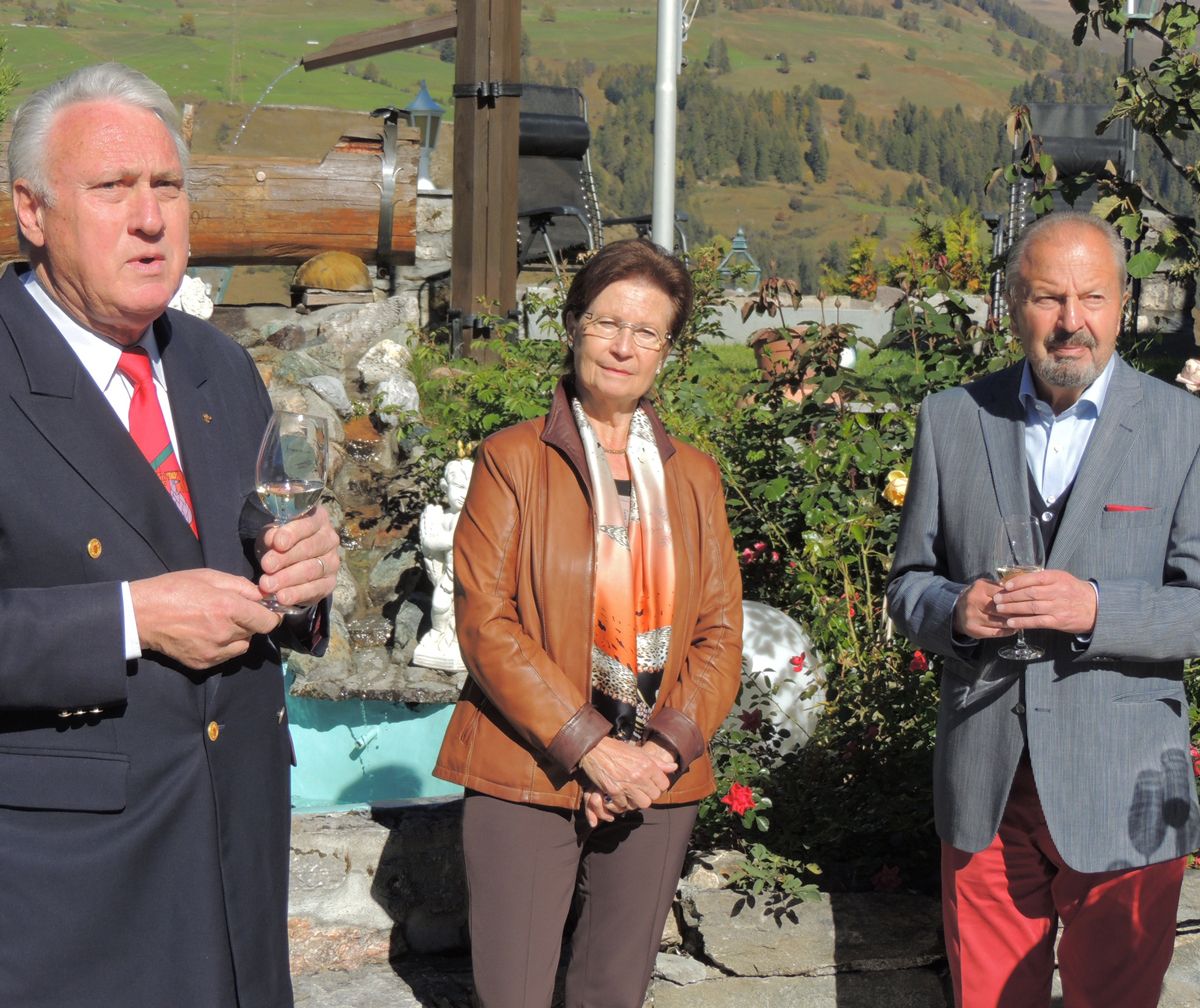 Rudolf Pazeller (a schnestra) ha bivgnantà a l’artist Rudolf Mirer cun sia duonna (fotografia: Benedict Stecher).