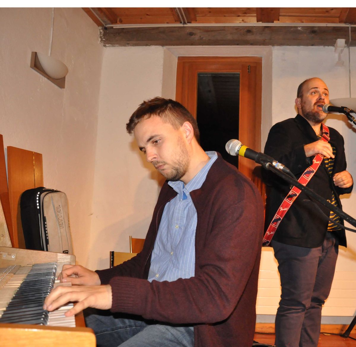 Guido Baldoni (links) und Alessio Lega (rechts) während ihres Auftritts in Maloja. Foto: Marie-Claire Jur.