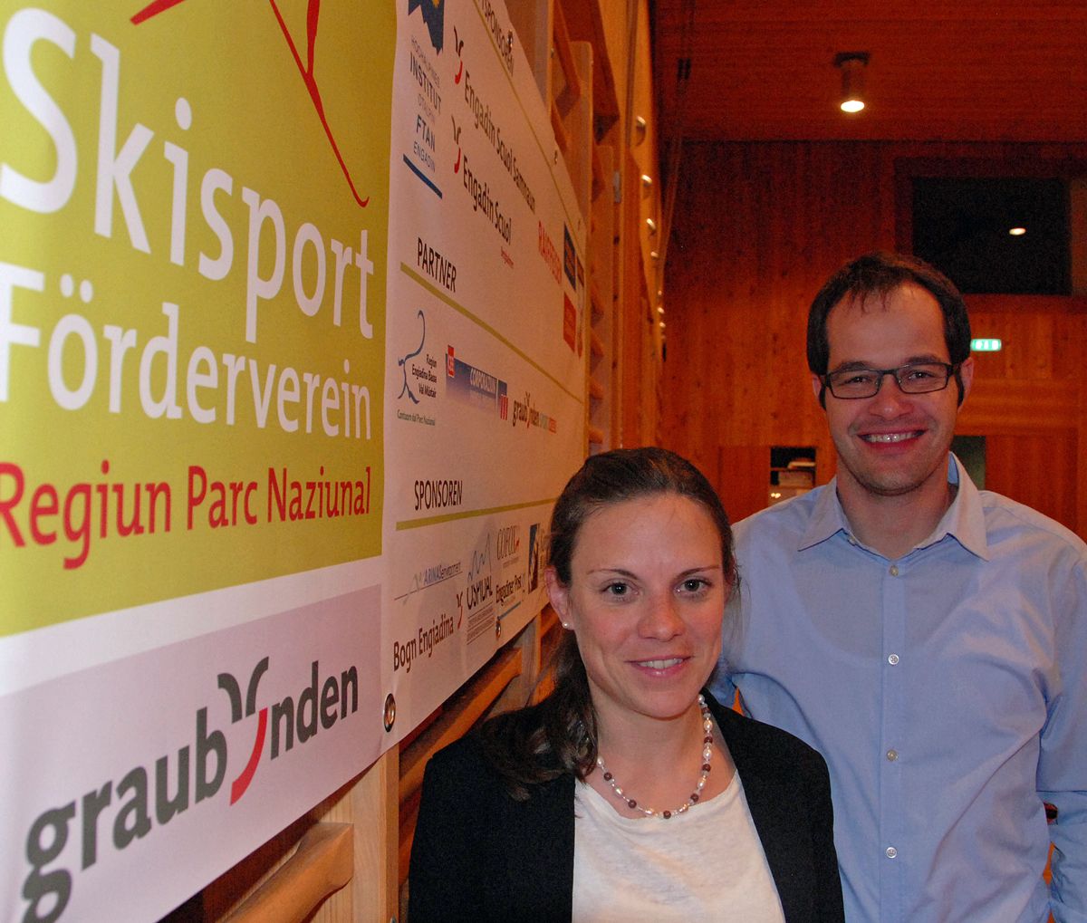 Muriel Hüberli, Leiterin der Sportklasse am HIF, und Gerhard Hauser, Präsident des Skisport Fördervereins Nationalpark Region, setzen sich für den Nachwuchs ein (Foto: Nicolo Bass).