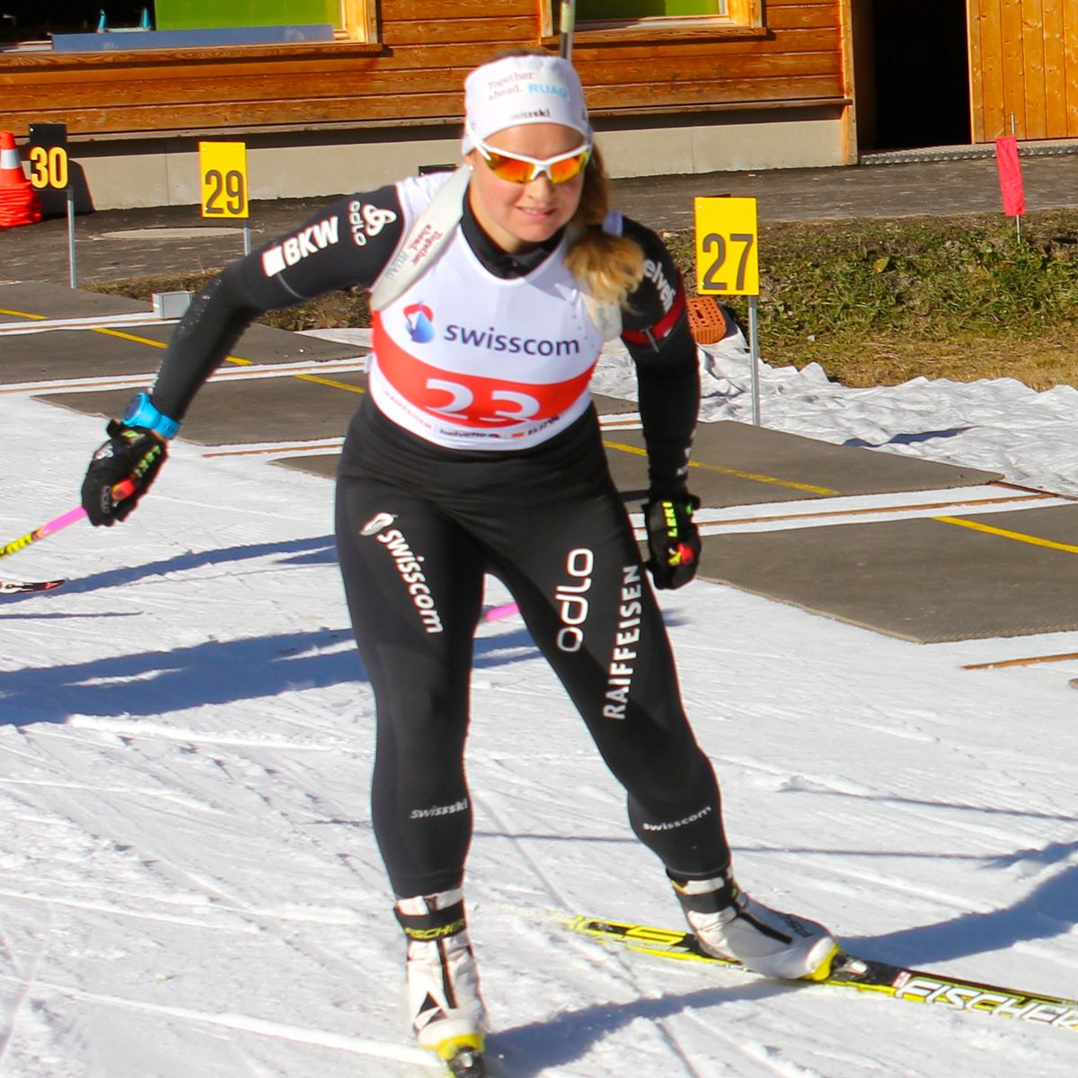 Irene Cadurisch, nach Verletzung zurück im Biathlon-Training. Foto: Stephan Kiener