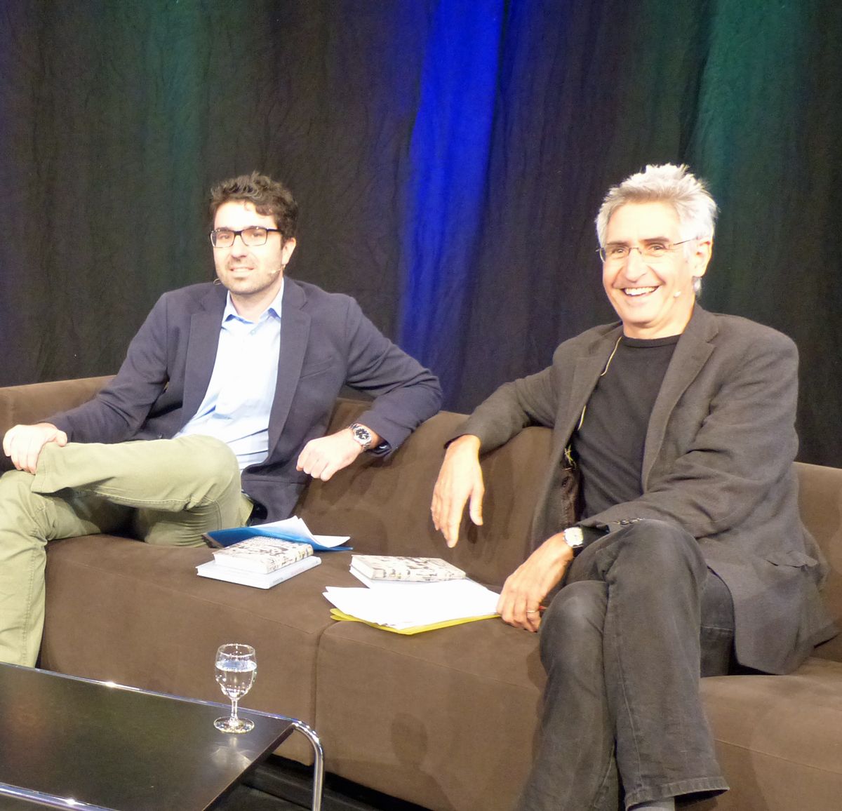 Martin Camenisch e Clà Riatsch han tut suot la marella al Tavulin litterar las metodas ed ils instrumaints dad auturas ed autuors (fotografia: Flurin Andry).