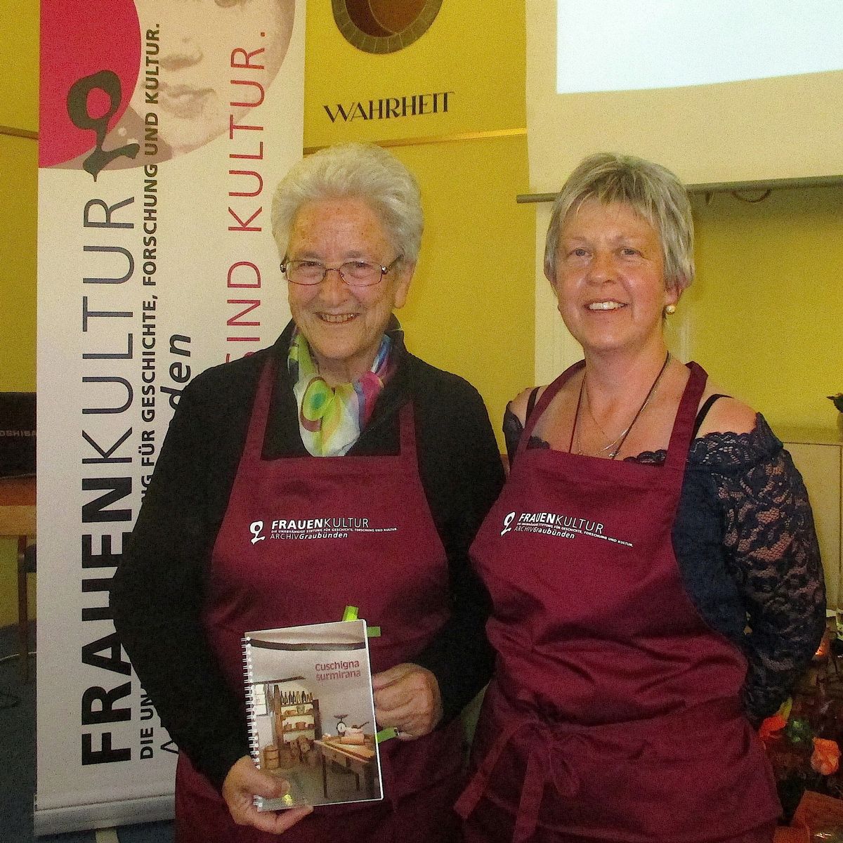 In Chur versammelten sich Frauen und einige Männer zur Weiterbildung in Sachen Köchinnen-Geschichte. Kochbuchautorin Rina Steier-Peduzzi wusste das Publikum zusammen mit Silke Redolfi zu unterhalten.