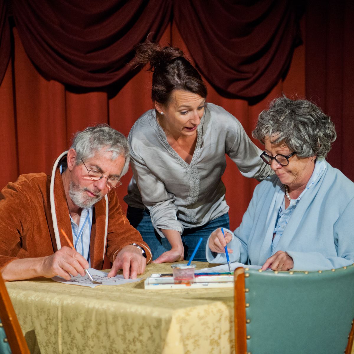 Das Stück «Mumien» zeigt auch ein pflegebedürftiges, total zerstrittenes Ehepaar. Die Darsteller im Stück schwanken zwischen schierer Hilflosigkeit und scheinheiliger Boshaftigkeit. Foto: Rolf Canal