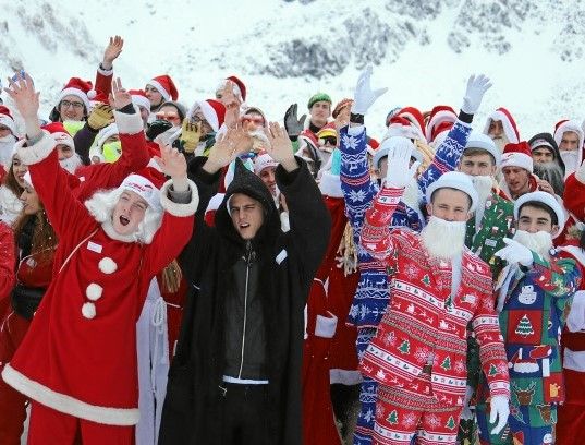 Alle Nikoläuse hatten Spass an der ClauWau Weltmeisterschaft in Samnaun. Foto: swiss-image.ch/Andy Mettler