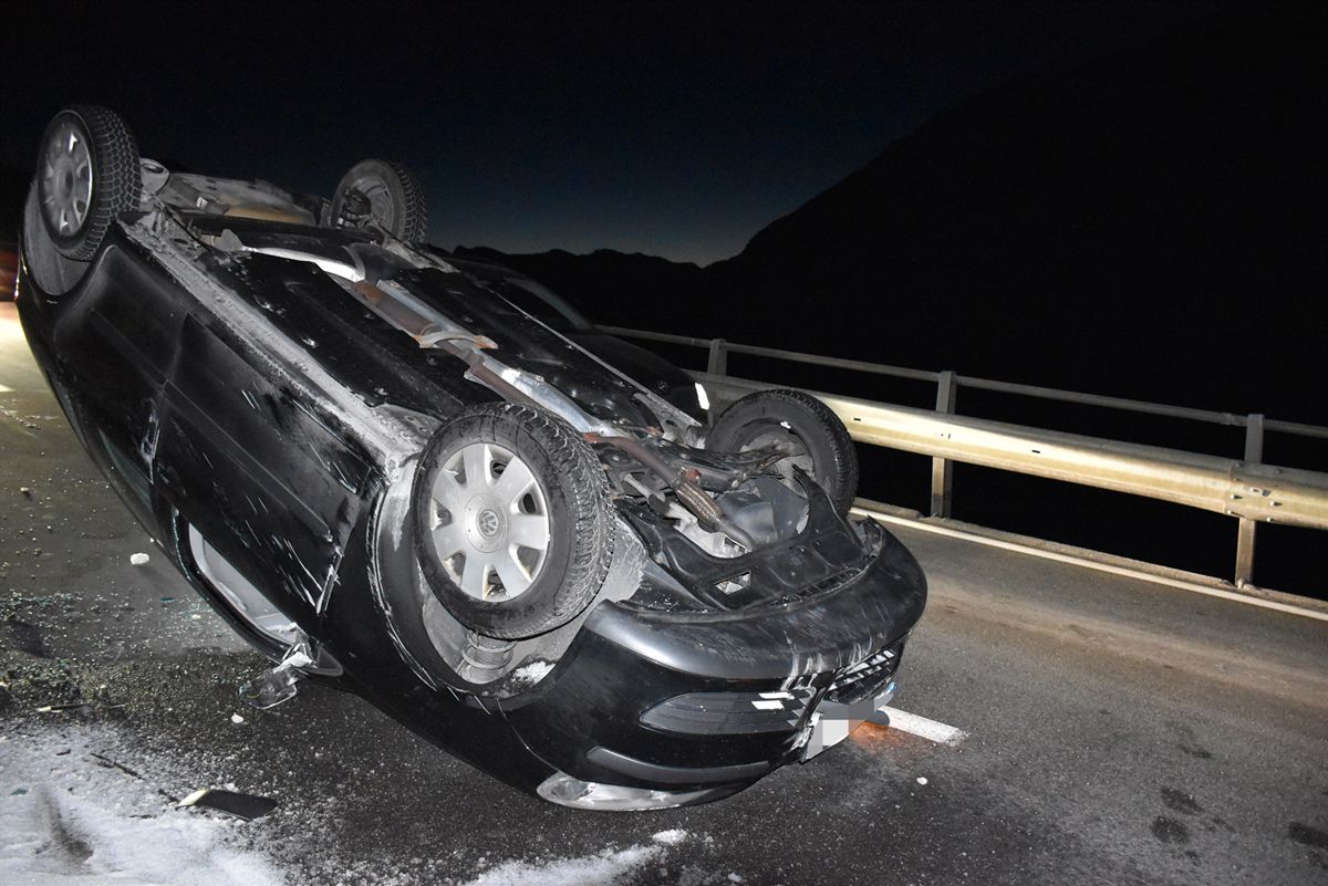 Eine 24-jährige deutsche Autofahrerin fuhr am Sonntag gegen 17 Uhr von Silvaplana Richtung Bivio. Unterhalb der Passhöhe geriet ihr Fahrzeug ins Rutschen, prallte in den Schneewall am rechten Strassenrand, überschlug sich und kam auf dem Dach zum Stillstand. Die Insassen blieben unverletzt.