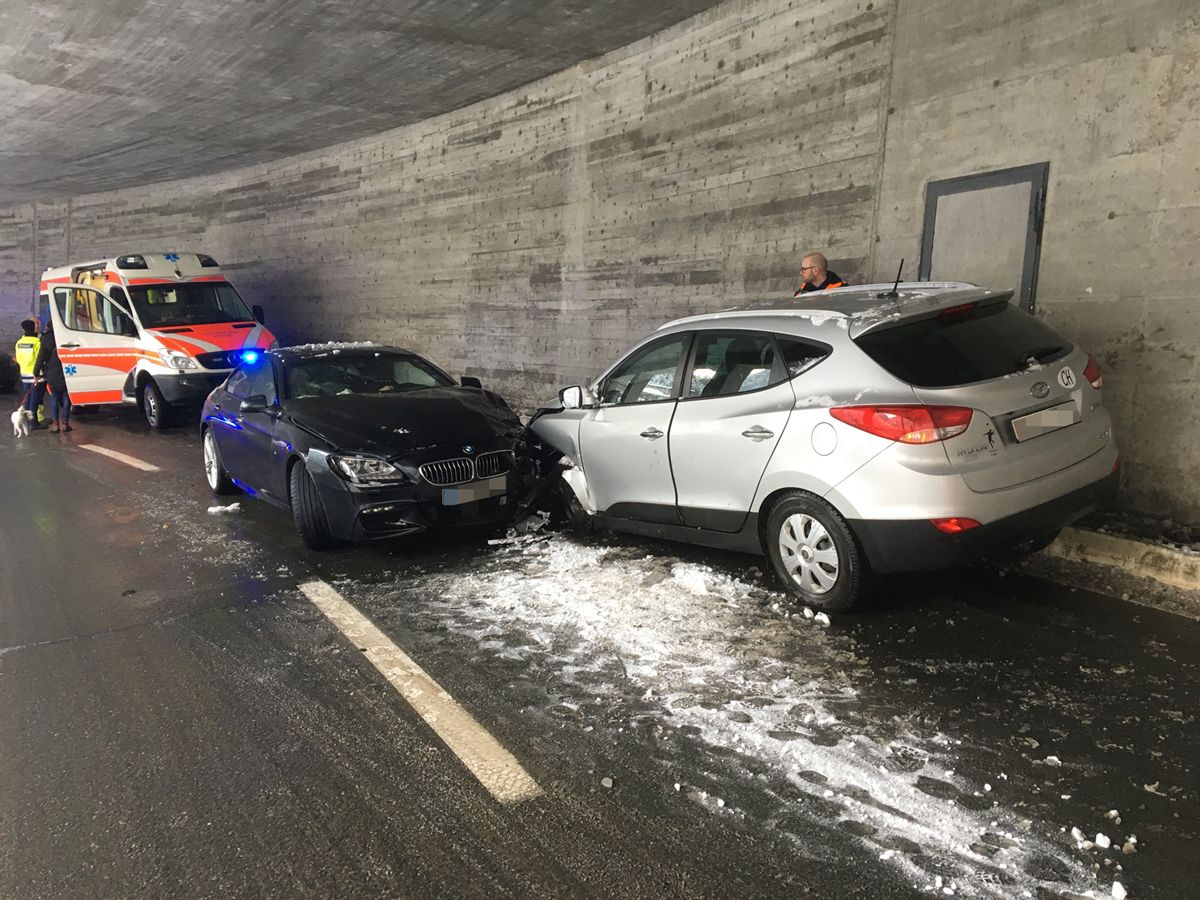 In Martina sind am Sonntagnachmittag zwei Autos zusammengestossen. Eine 45-jährige Autofahrerinkam in der Gallerie Chasté kurz vor Vinadi in der dortigen Rechtskurve ins Rutschen und geriet auf die Gegenfahrbahn. Dabei kam es zu einer Frontalkollision mit einem entgegenkommenden Auto.
