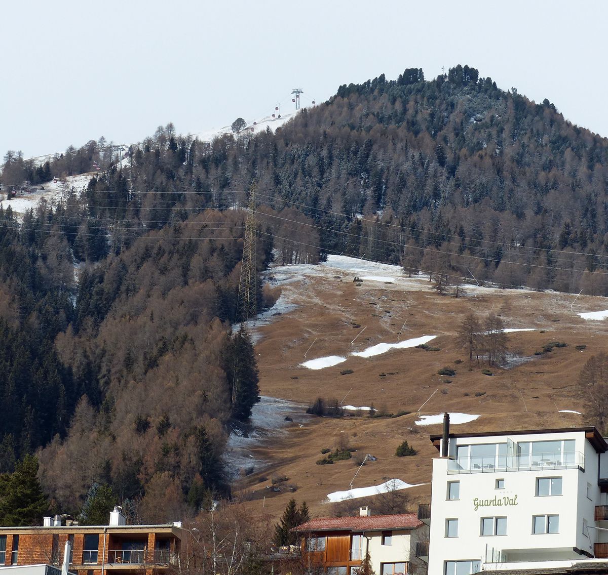 Causa mancanza da naiv nu s’haja pudü drivir tanter las festas da Nadal e Büman la pista da la Motta Naluns fin giò Scuol (fotografia: Flurin Andry).