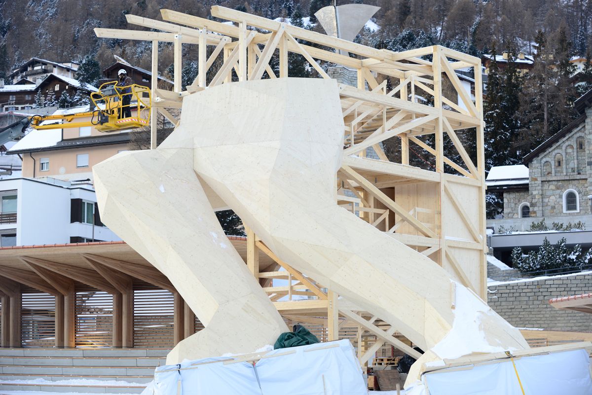 Der hölzerne Skiriese erhebt sich