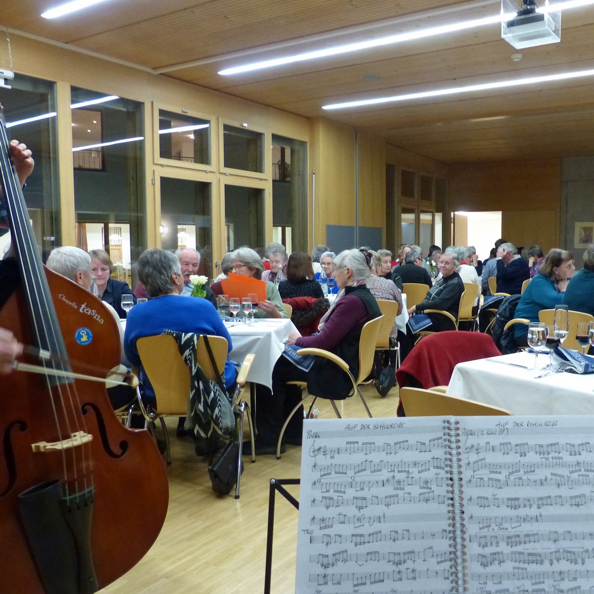 La festa pels voluntaris cun tschaina e musica ha gnü lö a Scuol illa sala polivalenta da la dmura d’attempats Puntota (fotografia: Flurin Andry).