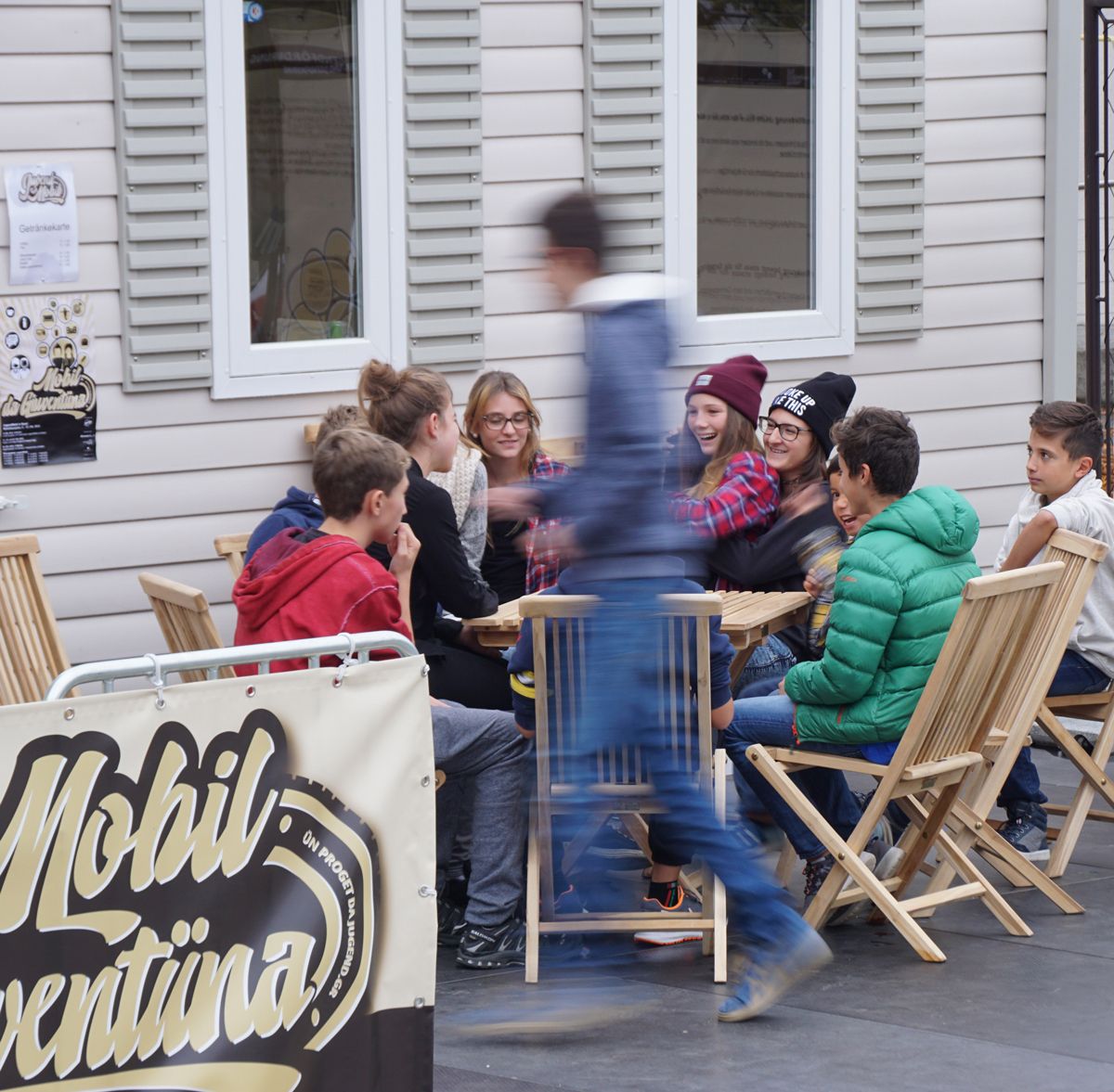Das Angebot «JugendMobil» von jugend.gr spricht in erster Linie die Oberstufenschüler an. Die Jugendlichen finden dort einen ungezwungenen und betreuten Treffpunkt für das gemütliche Zusammensein, für Spiel und Spass. Das Ziel ist aber, dass in den Gemein
