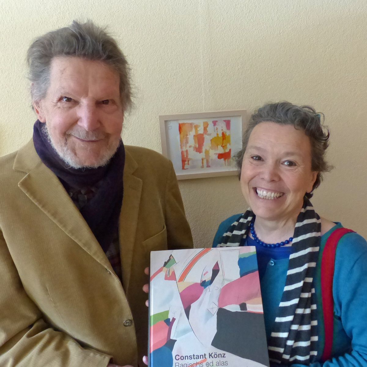 Constant Könz e l'autura Marcella Pult culla monografia davart l'artist engiadinais (fotografia: Flurin Andry).