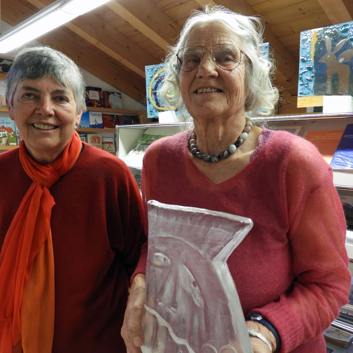 Anna Ratti (a schnestra) ha preschantà l’artista Annetta Catarina Ganzoni e sias ouvras (fotografia: Annatina Filli).