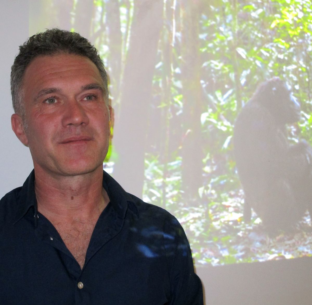 Das Forschungsziel des Referenten Klaus Zuberbühler der Universität Neuenburg ist, die Sprache der Affen in ihrer natürlichen Umgebung zu beobachten und zu beschreiben. Foto: Katharina von Salis