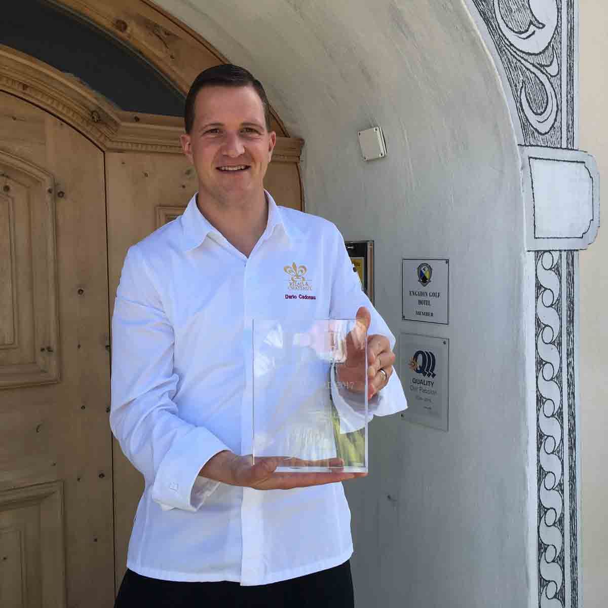 Dario Cadonau ist mit seinem In Lain Hotel Cadonau in Brail seit sechs Jahren Mitglied bei den Jeunes Restaurateurs d’Europe (JRE). Am Kongress des JRE in Luzern hat das 5-Sterne Superior Hotel den Award «Taste of Origin» erhalten. Für Dario Cadonau ist dies ein weiterer wichtiger Erfolg.
