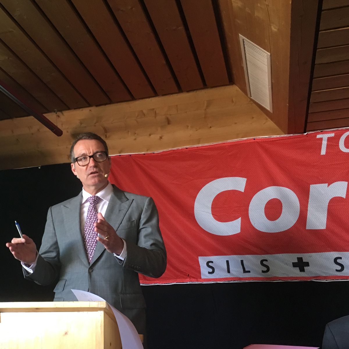 Franco Tramèr, Präsident AG Luftseilbahn Corviglia-Piz Nair während der Generalversammlung. Foto: Jon Duschletta