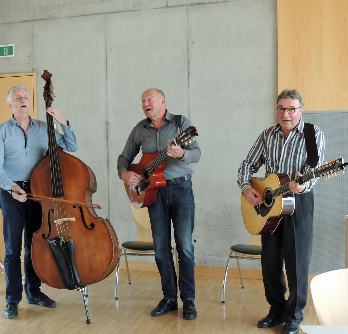Ils musicants Luis, Peder e Benedict han portà ün pa vita illa sala da la Chasa Puntota (fotografia: Tina Angerer).