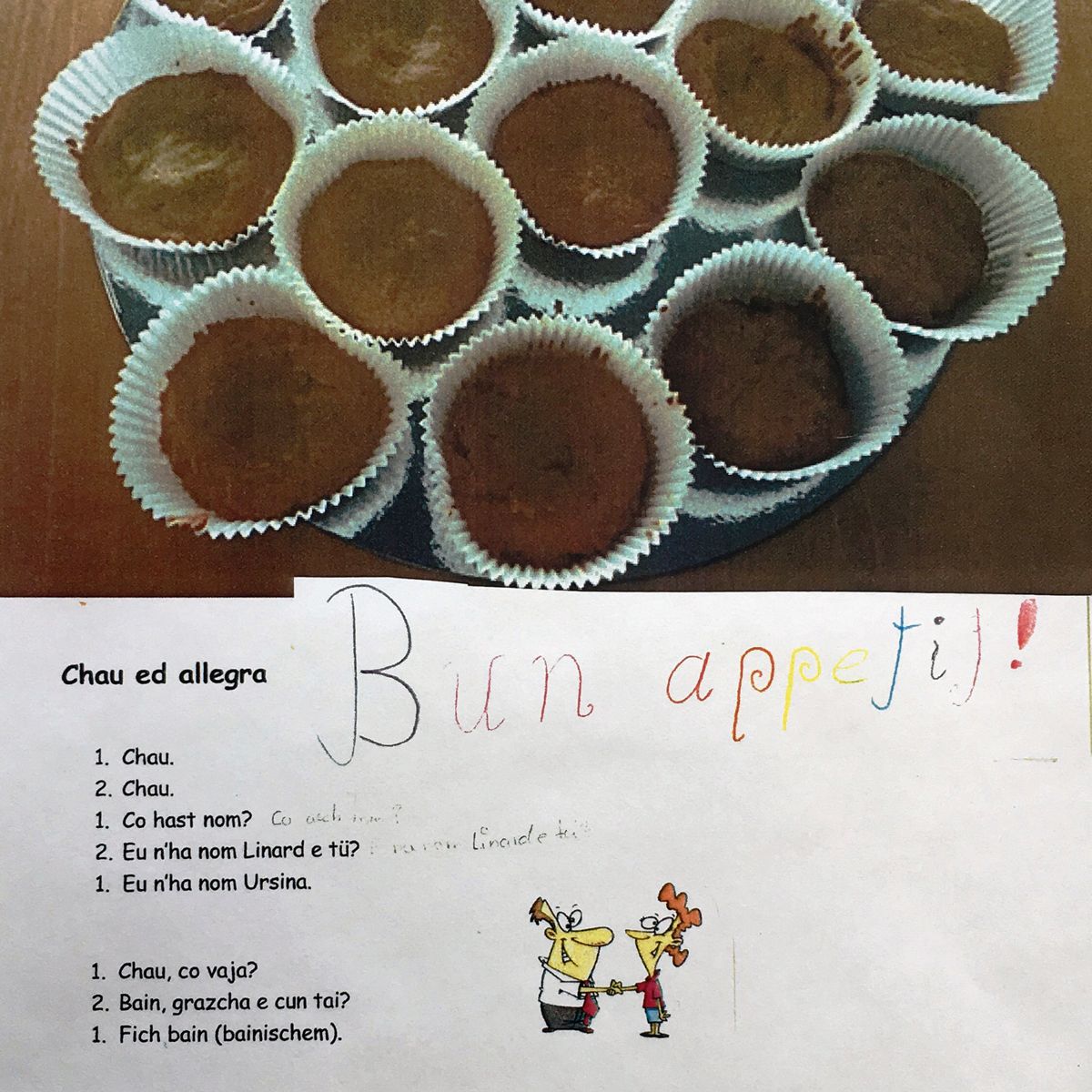 Survart las fuatschas grassas, fattas svess, e suotvart ün fögl da lavur da la tschinchavla classa da Hettingen (fotografia: mad).