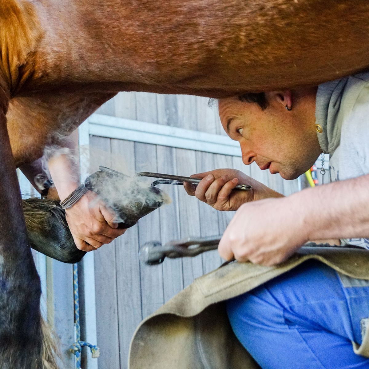 Hufschmied Curdin Joos aus S-chanf passt ein Hufeisen an. Foto: Jon Duschletta