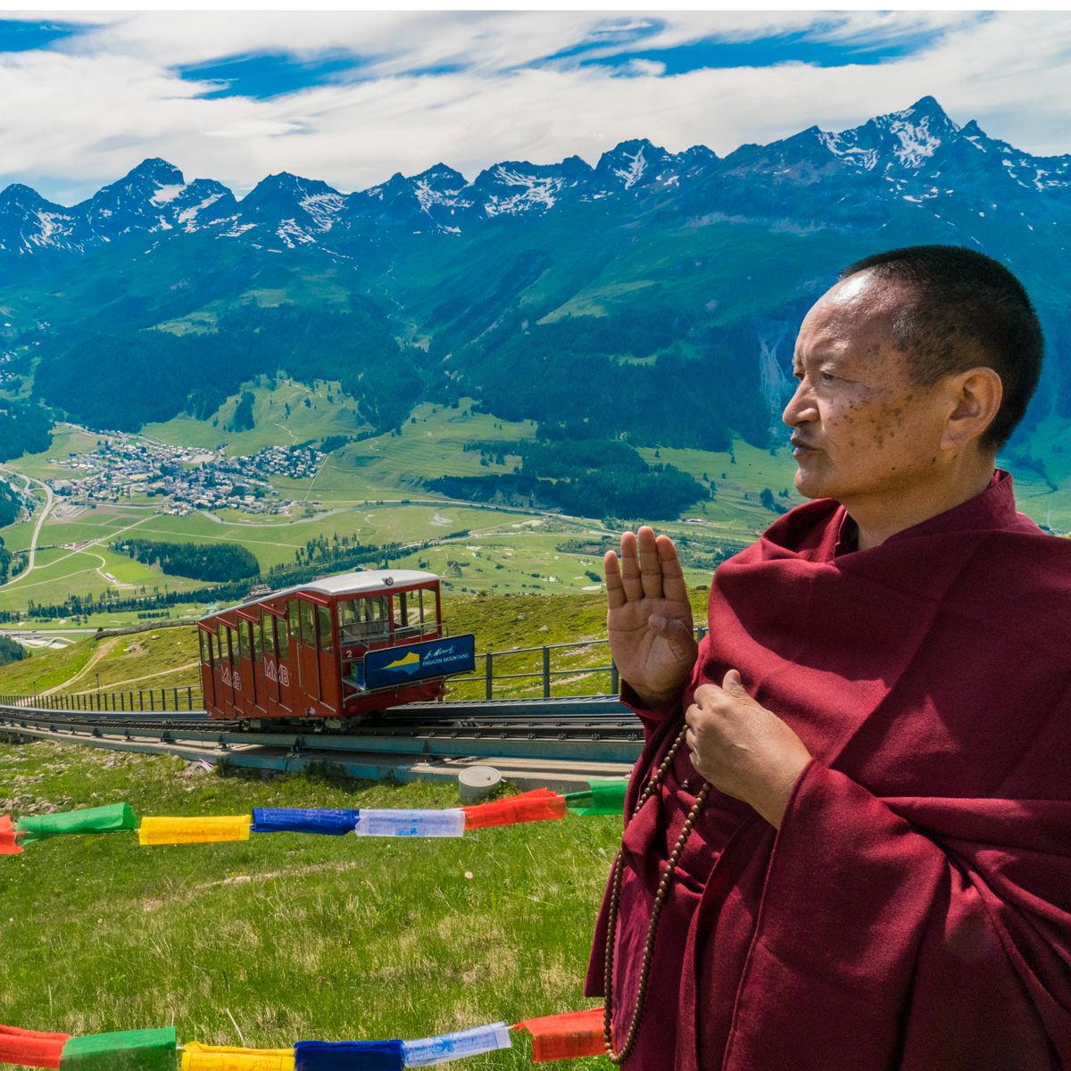 Segen für das Engadin von hoch oben von Ven. Lachung Rinpoche. Foto: fotoswiss.com/giancarlo cattaneo