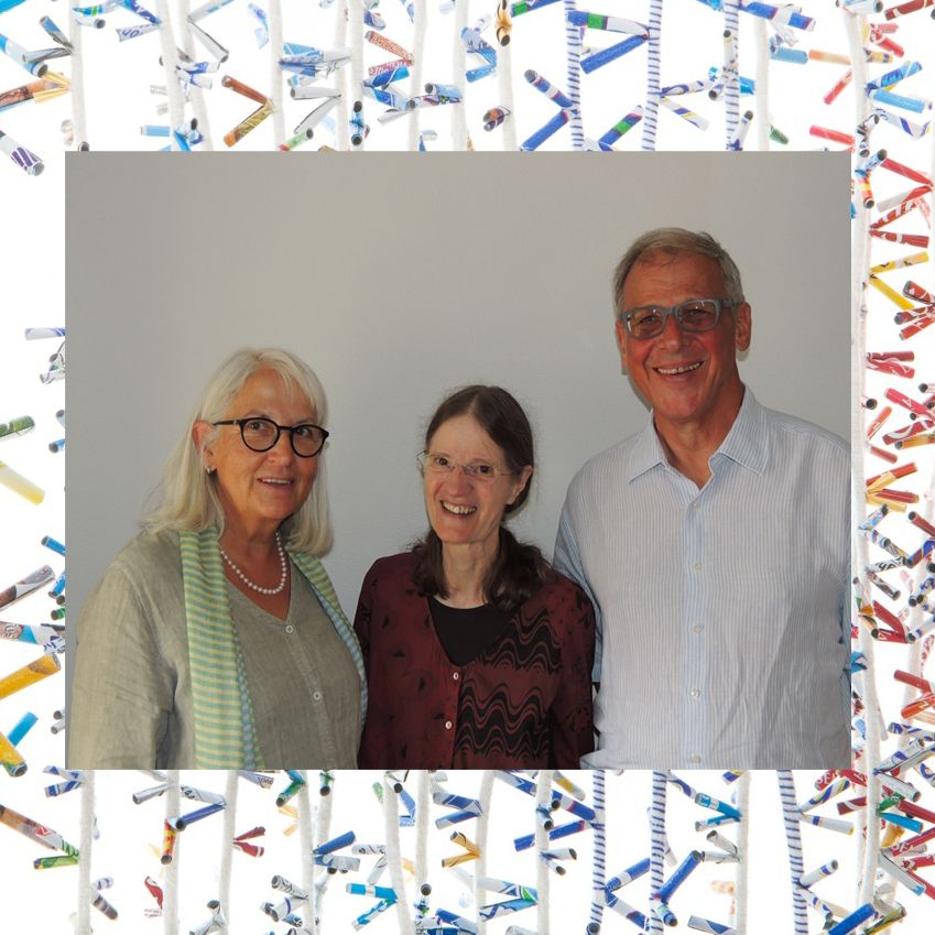 L’artista Rosmarie Artmann tanter Beatrice ed Albert Lanter. Ils conjugals Lanter han realisà diversas exposiziuns in lur chasa da vacanzas a Sent (fotografia/montascha: Benedict Stecher/Posta Ladina).