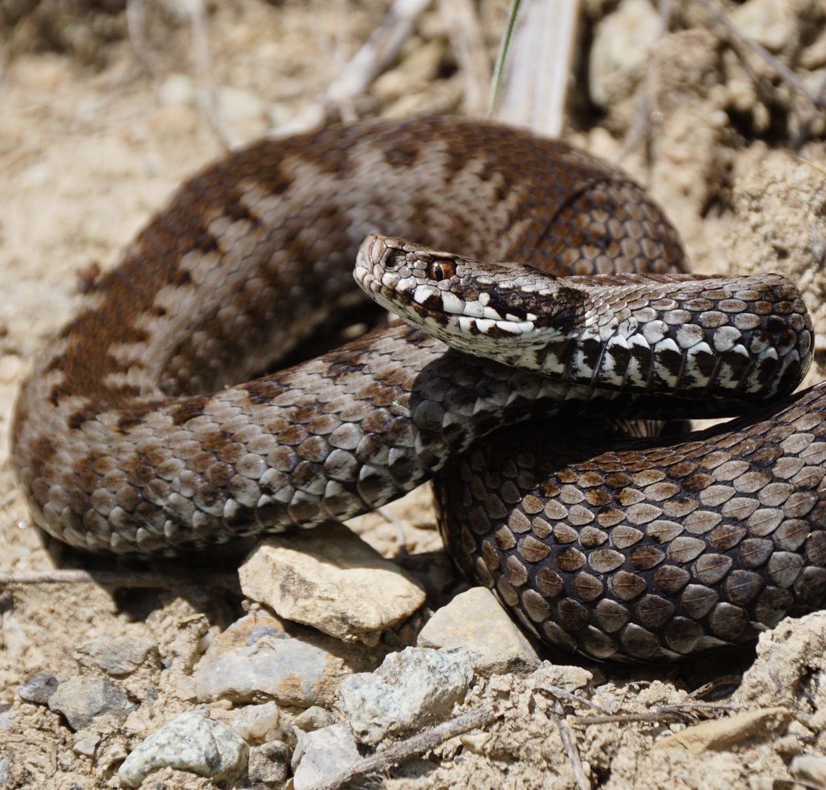 Ein Kreuzotter-Weibchen aus dem Habitat Samedan. Foto: Jon Duschletta
