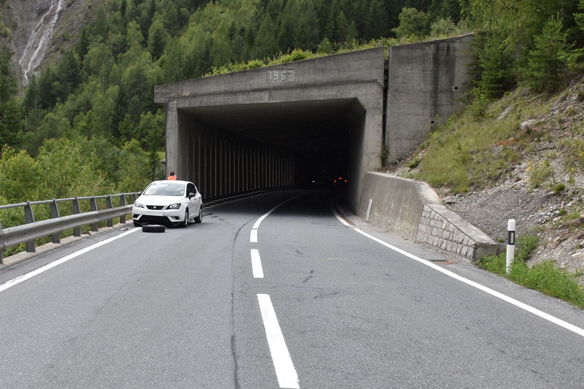 Vor der Galerie bei Val Mundin löste sich das linke Rad des Anhängers und rollte auf die Gegenfahrbahn frontal in einen entgegenkommenden Personenwagen. Durch die Kollision schleuderte das Rad wieder zurück und streifte seitlich einen hinter dem ...