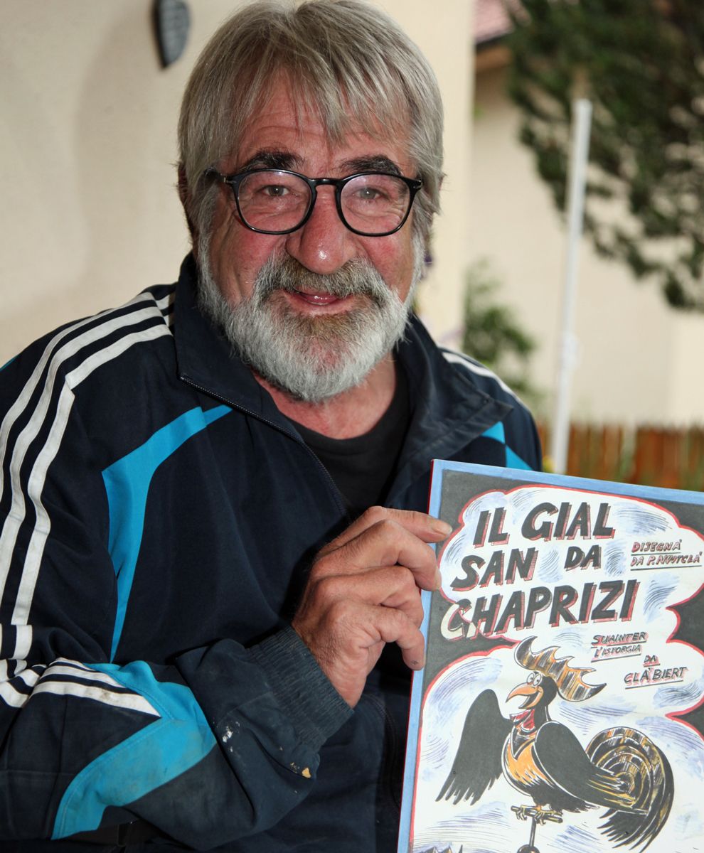 Paulin Nuotclà es cuntaint da pudair far reviver seis comics rumantschs in fuorma da cudesch (fotografia: Martina Fontana).
