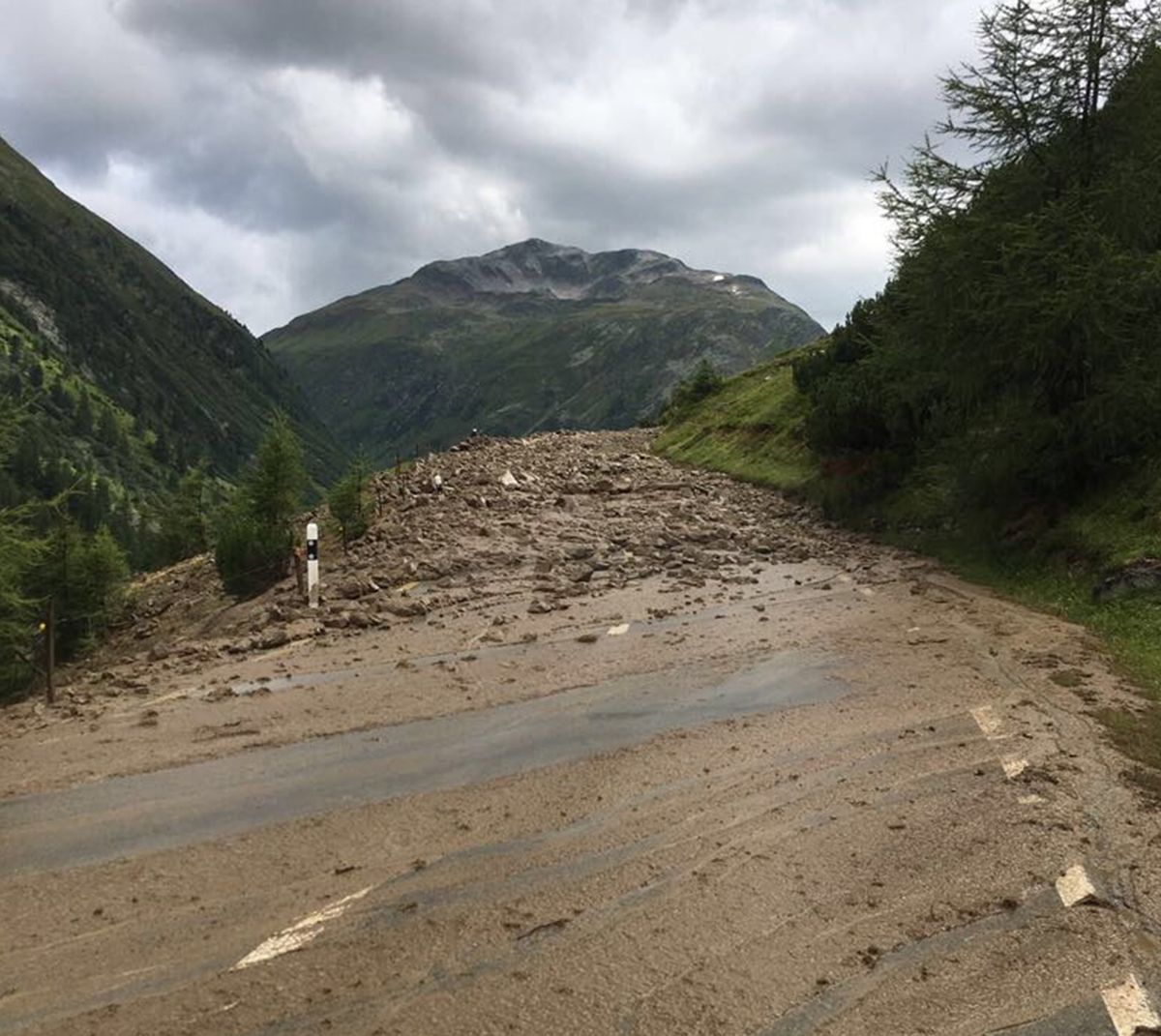 Rüfenniedergang auf dem Flüelapass oberhalb Susch (Foto: Kapo GR).