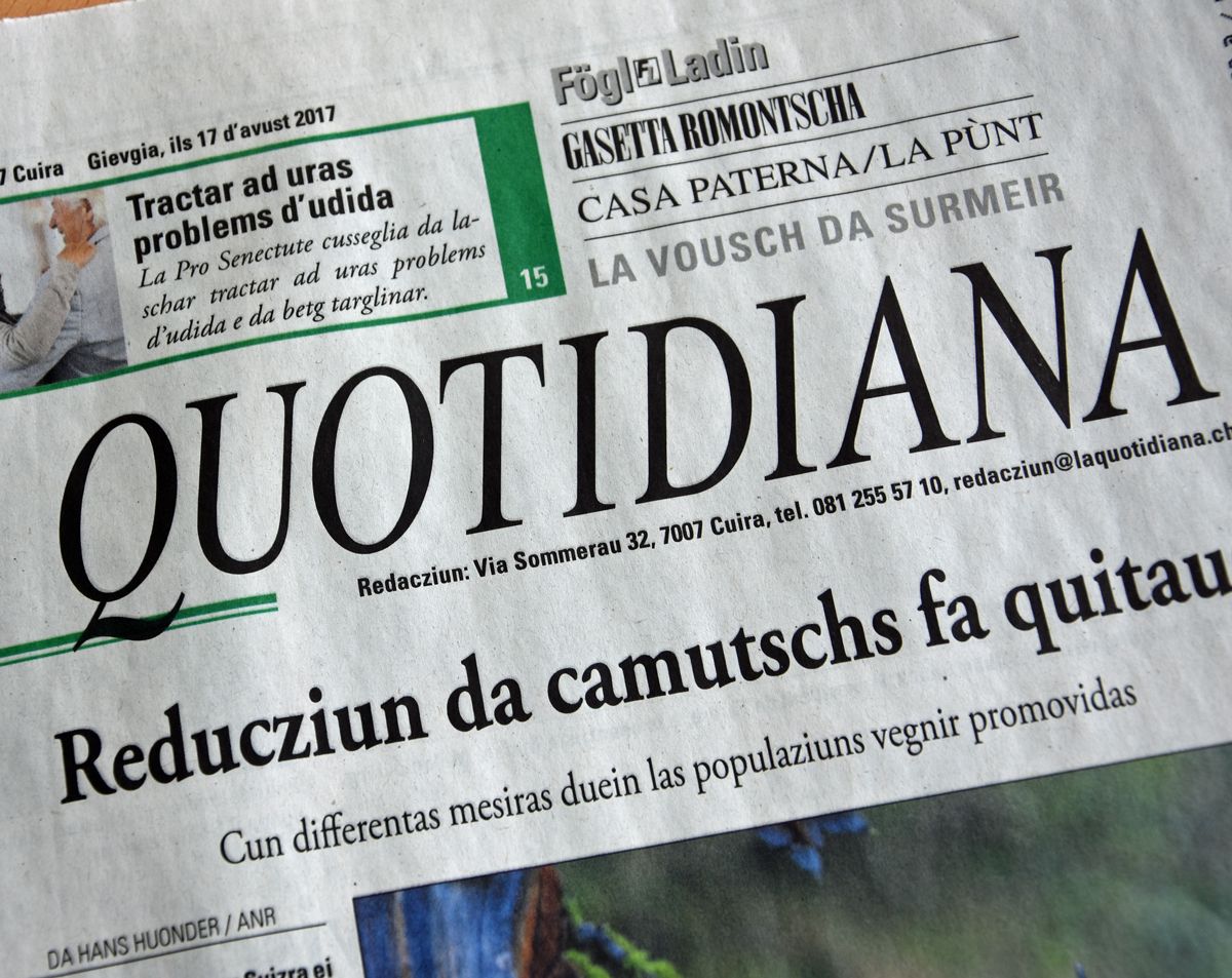La Confederaziun, il Chantun, la Lia Rumantscha e l'Agentura da novitads rumantscha mettan a disposiziun insembel 200'000 francs pel proget «Medias rumantschas 2019». Il böt da quist proget es da salvar La Quotidiana almain per l’on 2018 e d’elavurar ün concept per üna spüerta mediala per l’avegnir.