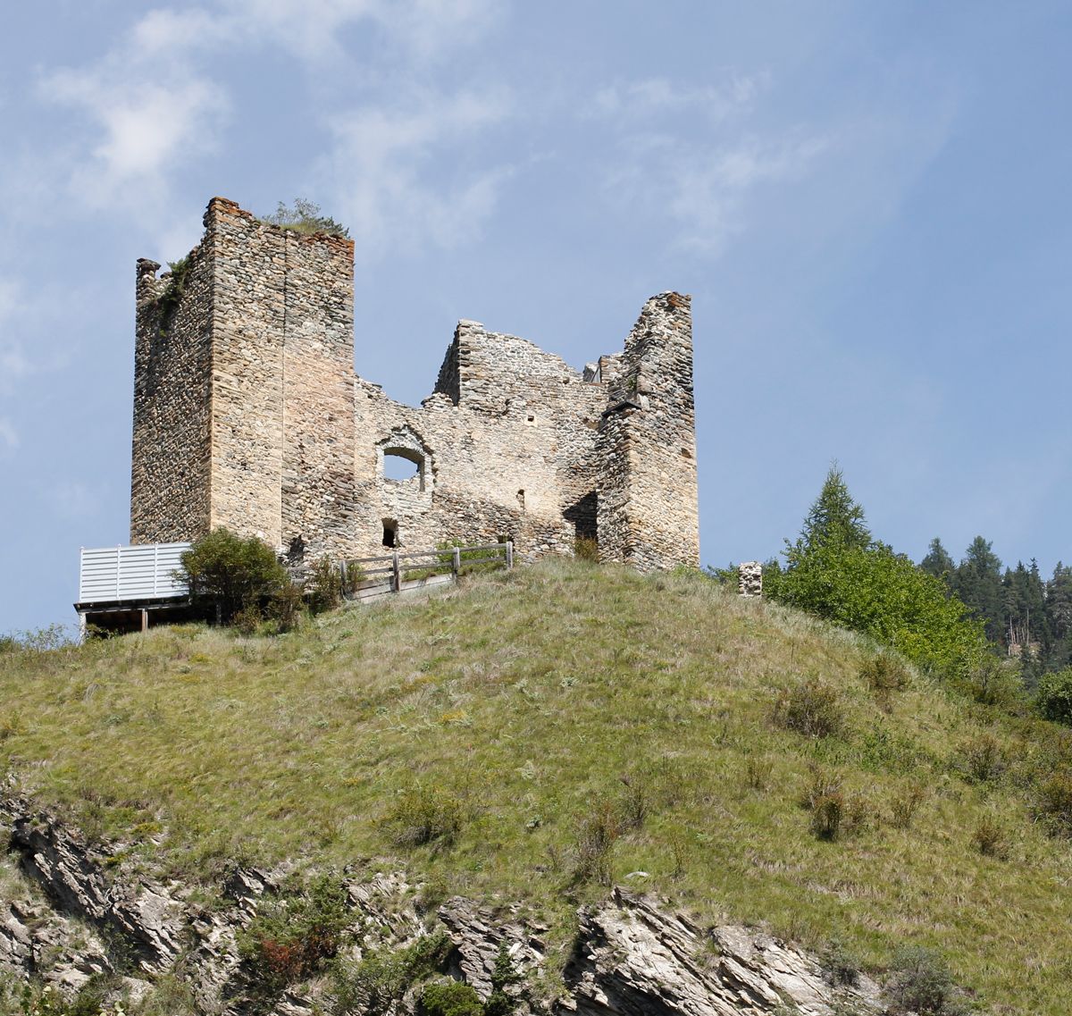 Las lavuors da la quart’etappa per mantgnair la ruina Tschanüff a Ramosch cuntinuan dal 2018 (fotografia: Georg Luzzi).