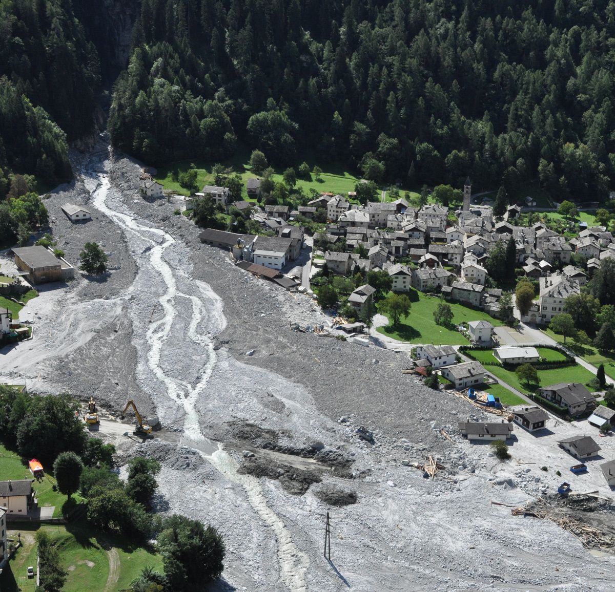 Die Ortsteile Spino und Sottoponte gehören ab sofort zur roten Zone. Das bedeutet, dass diese Gebiete von jedem weiteren Murgang akut gefährdet sind. Die Häuser sind für zwei oder mehr Monate nicht bewohnbar.